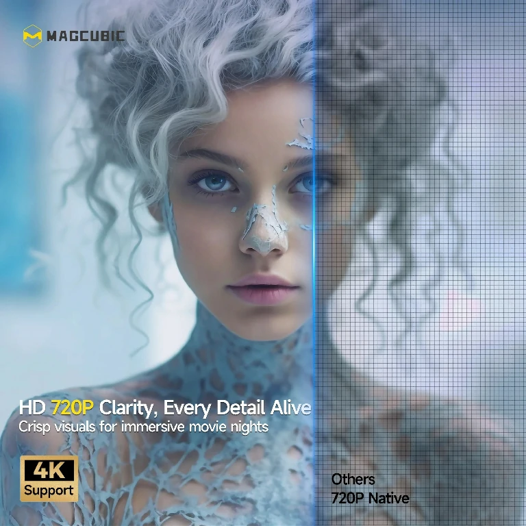 Magcubic HY300X Projector 4K is equipped with electric focus and auto vertical keystone correction. The remote uses the latest infrared high-precision sensor so you can effortlessly achieve a perfectly clear image with just a click. Whether you’re in the living room, bedroom, backyard, school, conference room, or even at a party, setting it up is a breeze!