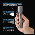 • Additionally, you can turn off the flashlight with a single click in SOS or stepless dimming mode.