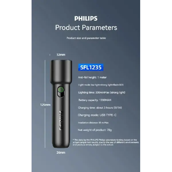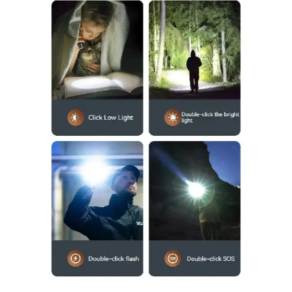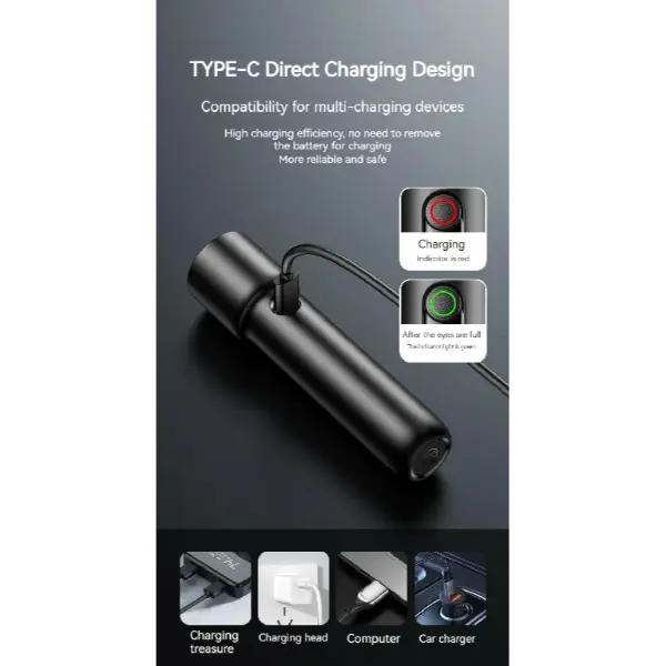 • Rechargeable :No need to constantly replace batteries. Simply recharge the flashlight using a USB cable.