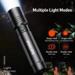 2.One-Hand Push-Pull Zoom: Long-distance beam (spotlight) & wide-area illumination (floodlight)
