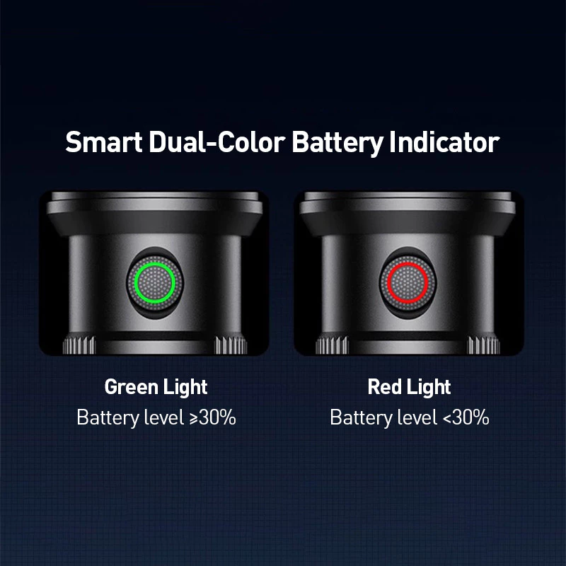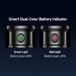 1.Battery Indicator: Green light (>30% battery), Red light (<30% battery)