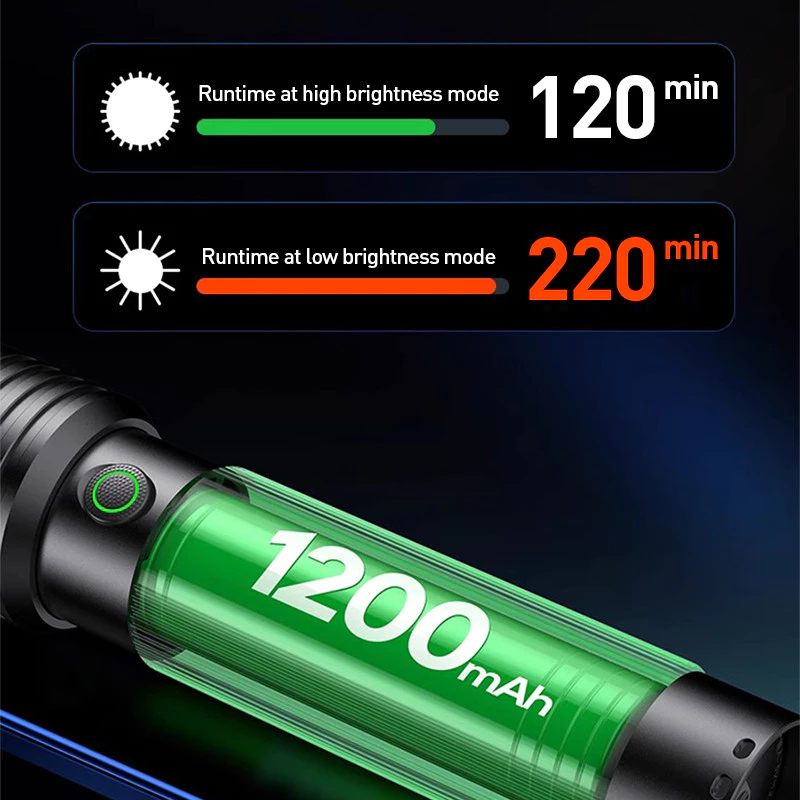 3.Stepless Dimming: Press and hold (0.5s) to adjust brightness in low/high modes