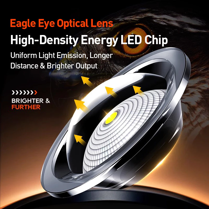 1.Optical Eagle-Eye Lens + High-Density LED: Brighter and longer-range illumination